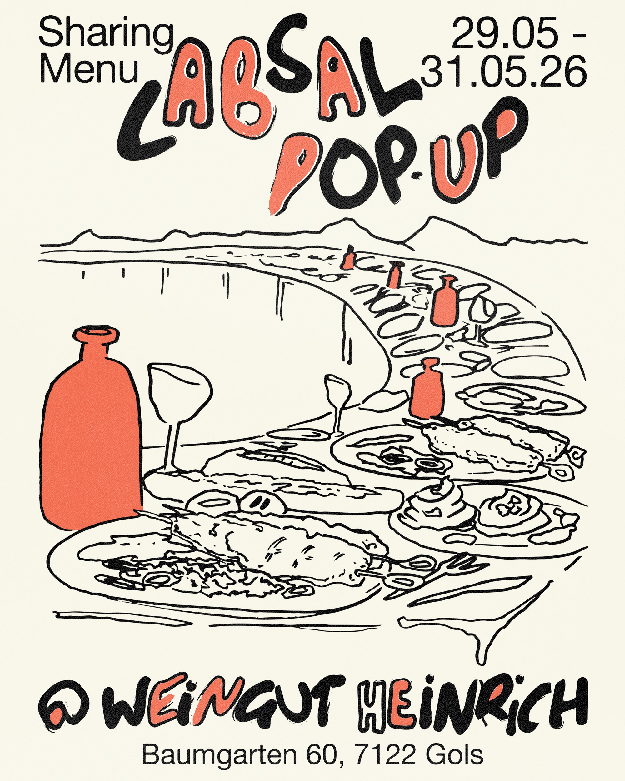 Vom 29. bis 31. Mai 2026 öffnet unser Pop-Up im Hof vom Weingut Heinrich: an den ersten zwei Tagen abends, am Ultimo mittags. Wir servieren ein Menü in 4 Gängen zum Teilen und gemeinsam Genießen.